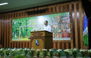 ရှေးဦးစွာ ပြည်ထောင်စုဝန်ကြီး ဦးခင်မောင်ရီက အဖွင့်အမှာစကား ပြောကြားရာတွင် သစ်အခြေခံစက်မှုလုပ်ငန်းများအတွက် ကုန်ကြမ်းလိုအပ်ချက်များ ဖြည့်ဆည်းပေးရန်အတွက် နိုင်ငံပိုင်သစ်တောစိုက်ခင်းများ တည်ထောင်လျက်ရှိသကဲ့သို့ ပုဂ္ဂလိကသစ်တောစိုက်ခင်းများ တည်ထောင်ခြင်းကိုလည်း အားပေးလျက်ရှိကြောင်း၊ သစ်အခြေခံစက်မှုလုပ်ငန်းများ ဖွံ့ဖြိုးတိုးတက်စေရေးအတွက် လုပ်ငန်းရှင်များအနေဖြင့် စျေးကွက်သစ်များရှာဖွေခြင်း၊ ဒေသတွင်းနိုင်ငံများ၏ ပြည်ပတင်ပို့မှု/တင်သွင်းမှု အခြေအနေများကို လေ့လာပြီး ကြိုးစားဆောင်ရွက်သွားရန်လိုကြောင်း၊ နိုင်ငံအတွင်း ပြည်တွင်းပြည်ပ သစ်အခြေခံ လုပ်ငန်းရှင်များ ပိုမိုရင်းနှီးမြှုပ်နှံလာစေရန် ပြည်ပသို့ သစ်အလုံးလိုက်တင်ပို့ခြင်းအား ၂၀၁၄ ခုနှစ်တွင် စတင်ရပ်ဆိုင်းခဲ့ပြီး သစ်ခွဲသားများကိုသာ တင်ပို့ခွင့် ပြုခဲ့ရာမှ ၂၀၂၃ ခုနှစ်တွင် သစ်အချောထည်နှင့် တစ်ဝက်တစ်ပျက်အချောထည်များကိုသာ ပြည်ပ တင်ပို့ခွင့် ပြုခဲ့ကြောင်း၊ ထုတ်လုပ်တင်ပို့ရောင်းချရာ တွင်လည်း ပွင်းလင်းမြင်သာမှုရှိပြီး တရားဝင်သစ် ဖြစ်ကြောင်း အာမခံနိုင်သည့်စနစ်တစ်ခုအဖြစ် ရပ်တည်နိုင်အောင် စည်းမျဉ်းစည်းကမ်းများ ရေးဆွဲထားပြီးဖြစ်ကြောင်း၊ သစ်အခြေခံပုဂ္ဂိလကဏ္ဍ၏ ပြည်တွင်း/ပြည်ပဝင်ငွေများ ယခုထက်ပို၍ ရရှိအောင် လုပ်ငန်းရှင်များအနေဖြင့် ကြိုးပမ်းဆောင်ရွက်သွားရန် လိုအပ်သကဲ့သို့ ဌာနအပိုင်းကလည်း လိုအပ်သည်များကို ညှိနှိုင်းပေါင်းစပ် ဆောင်ရွက်ပေးသွားမှာဖြစ်ကြောင်း၊ စျေးကွက်လိုအပ်ချက်နှင့် ကိုက်ညီသော သစ်၊ ဝါး၊ ကြိမ် အချောထည်များကို နည်းပညာအသုံးပြု၍ တိုးမြှင့်ထုတ်လုပ်တင်ပို့ နိုင်ပါက အလုပ်အကိုင်အခွင့်အရေးများပိုမိုရရှိစေမည့်အပြင် နိုင်ငံ့စီးပွားဖွံ့ဖြိုး တိုးတက်ရေးအတွက် လည်း အထောက်အကူပြုစေမှာဖြစ်သည့်အတွက် သစ်အခြေခံစက်မှုလုပ်ငန်းနှင့် ဝါးကြိမ်လုပ်ငန်းများ ဖွံ့ဖြိုးတိုက်တက်လာစေရန်အတွက် ဌာနနှင့် လုပ်ငန်းရှင်များ ပေါင်းစပ်၍ ကြိုးပမ်းဆောင်ရွက်သွားရန် တိုက်တွန်းပါကြောင်းဖြင့် ပြောကြားသည်။