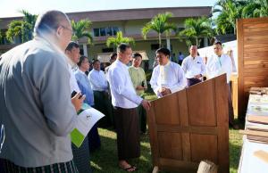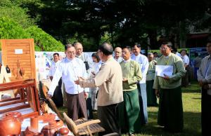 ထို့နောက် ပြည်ထောင်စုဝန်ကြီးသည် ခင်းကျင်းပြသထားသော သစ်၊ ဝါး၊ ကြိမ် အခြေခံ အချောထည်များအား လှည့်လည်ကြည့်ရှုရာ တာဝန်ရှိသူများက ရှင်းလင်းတင်ပြခဲ့ကြပြီး ပြည်ထောင်စုဝန်ကြီးက လိုအပ်သည်များ မှာကြားခဲ့ကြောင်း သိရှိရသည်။