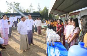 သယံဇာတနှင့်သဘာဝပတ်ဝန်းကျင် ထိန်းသိမ်းရေးဝန်ကြီးဌာန ပြည်ထောင်စုဝန်ကြီး ဦးခင်မောင်ရီ တက္ကသိုလ်များနယ်မြေ (ရေဆင်း)၏ (၇၈)နှစ်မြောက် ပြည်ထောင်စုနေ့ အထိမ်းအမှတ် တိုင်းရင်းသားရိုးရာ ပဒေသာကပွဲနှင့် ဈေးရောင်းပွဲတော်သို့တက်ရောက်
