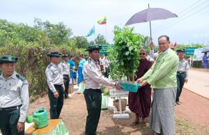 ပဲခူးမြို့နယ်သစ်တောဦးစီးဌာနနှင့်ပန်းပျိုးလက်ဘုန်းတော်ကြီးသင်ပညာရေးပရဟိတကျောင်းတို့ပူးပေါင်းကျင်းပသည့်မြို့နယ်အဆင့်မိုးရာသီသစ်ပင်စိုက်ပျိုးပွဲတော်ကျင်းပ