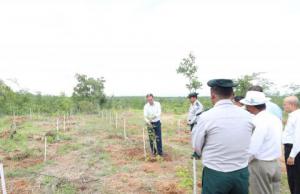 ဆက်လက်၍ ၂၀၂၀ ခုနှစ်တွင် စိုက်ပျိုးထားသော အထူးစိမ်းလန်းစိုပြည်ရေးဇုန်စီမံကိန်းသို့ ရောက်ရှိပြီး အပင်များ အောင်မြင်ဖြစ်ထွန်းနေမှုအား ကြည့်ရှုပြီး ၂၀၂၂ ခုနှစ်တွင် စိုက်ပျိုးထားသော စံပြတမာစိုက်ခင်း(၁၀၀)ဧကအား ကြည့်ရှုစစ်ဆေးပြီး အောင်မြင်ဖြစ်ထွန်းနေမှုများအား ဆက်လက် ထိန်းသိမ်းသွားရန် မှာကြားသည်။