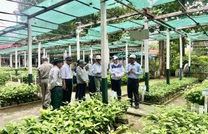 သစ်တောဦးစီးဌာနညွှန်ကြားရေးမှူးချုပ်၊ဒုတိယညွှန်ကြားရေးမှူးချုပ်(စီမံ)၊ညွှန်ကြားရေးမှူးများလိုက်ပါ၍ပြည်ထောင်စုနယ်မြေ၊နေပြည်တော်ရှိသုတေသနစခန်းအမှတ်(၅)မိုးစွေသို့ရောက်ရှိကာအမြဲတမ်းပျိုးဉယျာဉ်အတွင်းပျိုးပင်များပျိုးထောင်ထားရှိမှုအခြေအနေများအားကြည့်ရှုစစ်ဆေး