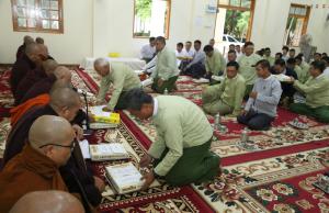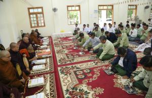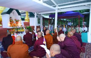ဓမ္မာရုံတွင် ကျင်းပပြုလုပ်ရာ သစ်တောဦးစီးဌာန၊ ညွှန်ကြားရေးမှူးချုပ် ဒေါက်တာသောင်းနိုင်ဦး၊ ဒုတိယညွှန်ကြားရေးမှူးချုပ်များနှင့် သစ်တောနှင့် ပတ်ဝန်းကျင်ဆိုင်ရာတက္ကသိုလ် ပါမောက္ခချုပ်၊ ညွှန်ကြားရေးမှူးများ၊ အရာထမ်း/ အမှုထမ်းများတက်ရောက်ကြပါသည်။အခမ်းအနားအစီအစဥ်အရပြည်လုံးချမ်းသာစေတီတော်မြတ်ကြီးအား ဘုရားအနေကဇာတင်လှူ ပူဇော်ပြီးနောက် သစ်တောဦးစီးဌာန၊ ညွှန်ကြားရေးမှူးချုပ် ဒေါက်တာသောင်းနိုင်ဦး၊ ဒုတိယညွှန်ကြားရေးမှူးချုပ်များ၊ သစ်တော နှင့် ပတ်ဝန်းကျင်ဆိုင်ရာတက္ကသိုလ် ပါမောက္ခချုပ်၊ ညွှန်ကြားရေးမှူးများ၊ အရာထမ်း/ အမှုထမ်းများ၊ သစ်တောဝန်ထမ်းမိသားစုများမှ အရုဏ်ဆွမ်းအလှူဆက်ကပ်လှူဒါန်းခြင်း၊ ငါးပါးသီလခံယူဆောက်တည်ကြပြီး ဆရာတော် သံဃာတော်များ ရွတ်ဖတ်သရဇ္ဇျာယ်ကြသည့် ပရိတ်တရားတော်များကို နာယူခြင်းနှင့် သံဃာတော် အရှင်သူမြတ်များအား ဝါဆိုသင်္ကန်းနှင့်တကွ လှူဖွယ်ဝတ္ထုပစ္စည်းများ၊ နဝကမ္မအလှူတော်ငွေများကို အသီးသီး ဆက်ကပ်လှူဒါန်းခြင်းများ ဆောင်ရွက်ခဲ့ကြပြီး လှူဒါန်းမှုအစုစုတို့အတွက် ရေစက်ချအမျှပေးဝေ တရားနာယူခဲ့ကြကြောင်း သိရှိရပါသည်။