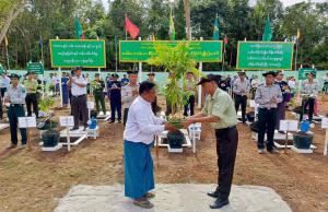 မွန်ပြည်နယ်၊သထုံခရိုင်စီမံခန့်ခွဲရေးနှင့်အုပ်ချူပ်ရေးကော်မတီဥက္ကဌ၏စီစဉ်ကြီး ကြပ်မှုဖြင့်သစ်တောဦးစီးဌာန၊လမ်းဦးစီးဌာနနှင့်မြန်မာ့မီးရထားတို့ပူး ပေါင်းကျင်းပသည့်လမ်းဘေးဝဲယာစိမ်းလန်းစိုပြည်ရေးသစ်ပင်စိုက် ပျိုးပွဲတော်အားကျင်းပ