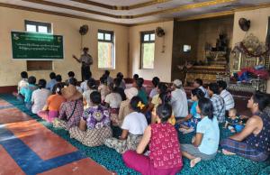 ရန်ကုန်တိုင်းဒေသကြီး၊ တိုက်ကြီးမြို့နယ်၊ ဖလုံဘူတာကျေးရွာအုပ်စု၊ အောင်ချမ်းသာကျေးရွာ၊ ဘုန်းကြီးကျောင်းတွင် သစ်တောထိန်းသိမ်းရေး၊ တောမီးကာကွယ်ရေးနှင့် မီးခိုးမြူငွေ့လျှော့ချရေးဆိုင်ရာ အသိပညာပေးဟောပြောပွဲကျင်းပ