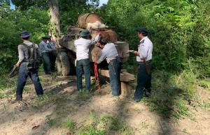 ပြည်သူလူထုပူးပေါင်းပါဝင်မှုဖြင့် လူထုအခြေပြုစောင့်ကြပ်ကြည့်ရှု့ သတင်းပို့စနစ်-CMRS ဖြင့် သတင်းပေးပို့ချက်အရ ၃-၁၁-၂၀၁၉ ရက်နေ့တွင် စစ်ကိုင်းတိုင်းဒေသကြီး၊ သစ်တောဦးစီးဌာနမှ သစ်တောဝန်ထမ်းများအဖွဲ့သည် မော်လိုက်မြို့နယ်၊ နန်းစံပယ်ကြိုးဝိုင်းအတွင်း နောက်တွဲယာဉ်(၄)စီးနှင့်အတူ တရားမဝင်တမလန်းခွဲသား(၁၁၃)ချောင်း (၁၅.၀၈၁၀)တန်အား ပိုင်ရှင်မဲ့ ဖမ်းဆီးရမိခဲ့ပြီး ဆက်စပ်ပတ်သက်သော တရားခံများအား စုံစမ်းရှာဖွေဖော်ထုတ်၍ ဥပဒေနှင့်အညီ ထိရောက်စွာ အရေးယူနိုင်ရေး စီစဉ်ဆောင်ရွက်လျက်ရှိပါသည်။